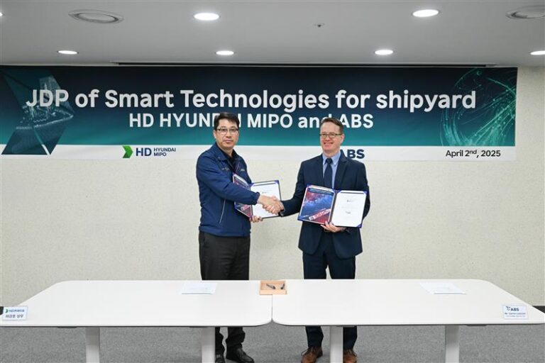 Classification society American Bureau of Shipping (ABS) and South Korean shipbuilder HD Hyundai Mipo (HMD) have signed a joint development project (JDP) to create digital manufacturing-based automation equipment for shipyards.