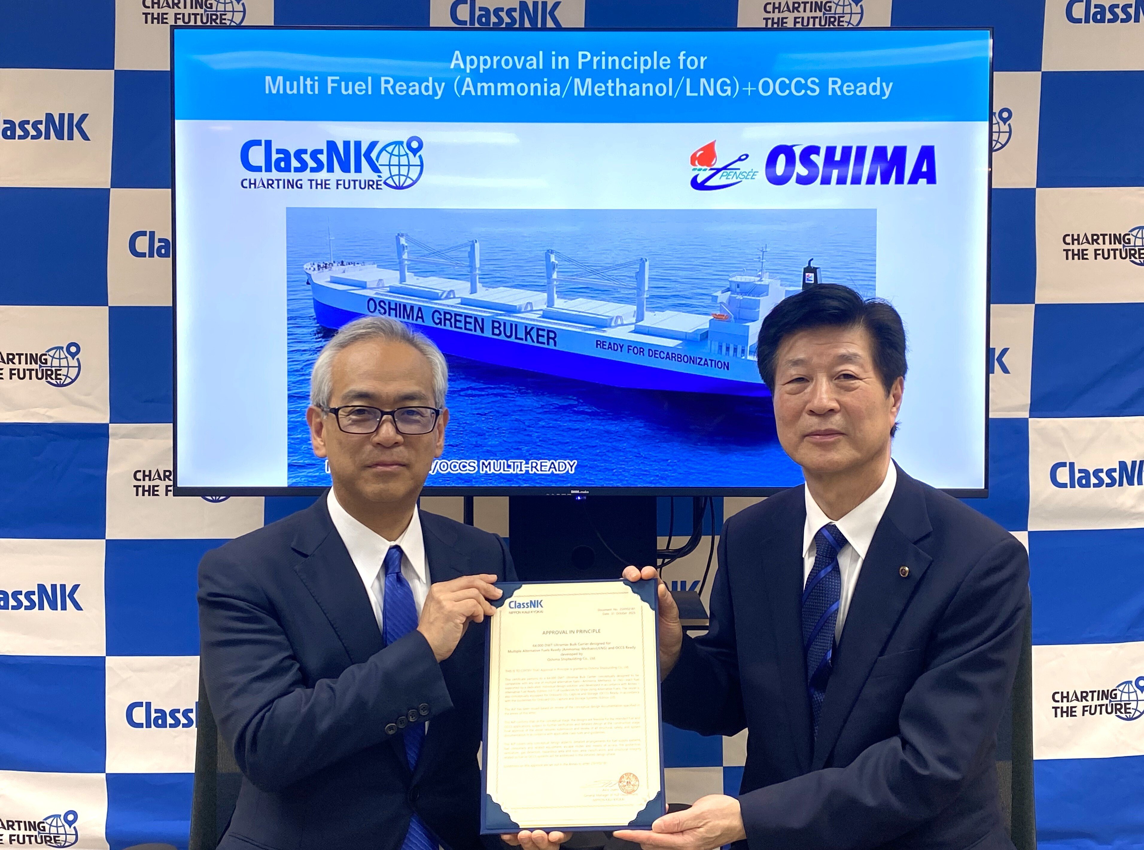 Japanese classification society ClassNK has issued approval in principle (AiP) for a concept design of a bulk carrier developed by Oshima Shipbuilding that is ready for multiple alternative fuels and onboard carbon capture and storage (OCCS).