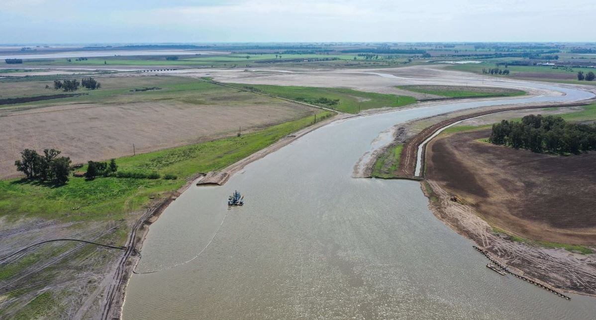 With the main pontoon placed on a wooden ramp, once assembled the dredger was pushed into the sea by 2 bulldozers assisted by a tug pulling the other end. The dredge design allows for this type of launching to make sure it can be deployed anywhere.