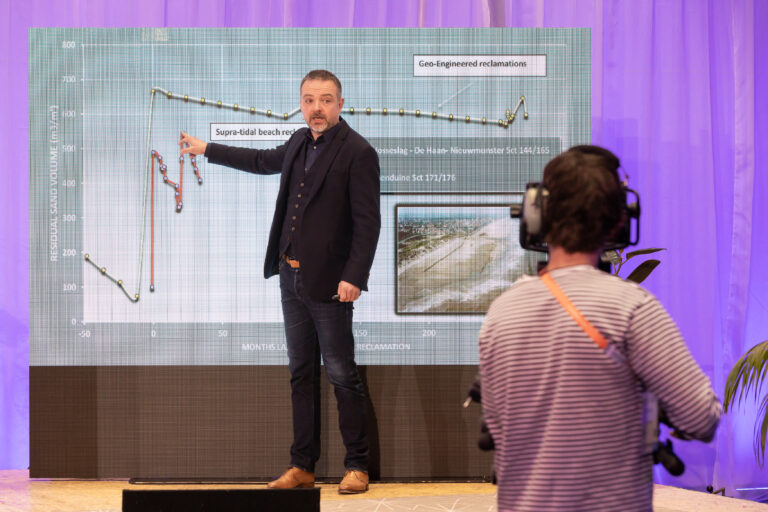 At the Game Changers session at this year’s OEEC, Tomas Sterckx, DEME’s R&D project manager, introduced the visitors to the Coastbusters project which focuses on more ecologically sound solutions that incorporate nature-inspired designs into coastal protection systems.