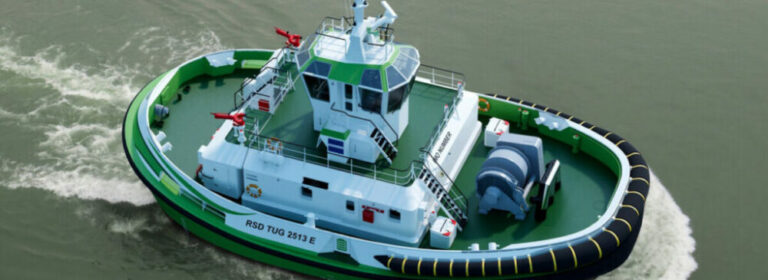 Damen’s fully-electric ship-handling tug is a RSD-E Tug 2513, a zero-emissions derivation of the IMO Tier III-ready RSD Tug 2513, introduced in 2018.