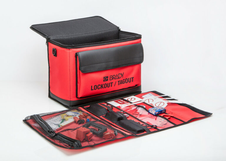 Brady supplied the solutions in practical Lockout/Tagout bags, 1 per maintenance professional. Each bag includes universal mini circuit breaker lockout devices to easily block circuit breakers in the off-position. Padlocks in the bag can be used to lock the universal mini circuit breaker lockout in place. They are personalised with an engraving, and keyed alike so that maintenance professionals can open all of their own padlocks with a single key. They are keyed different versus the padlocks in every other bag, so nobody can accidentally remove the padlock of a colleague who might still be servicing the machine. The padlocks are also colour-coded using green for all electrical lockout, and red for mechanical lockout.