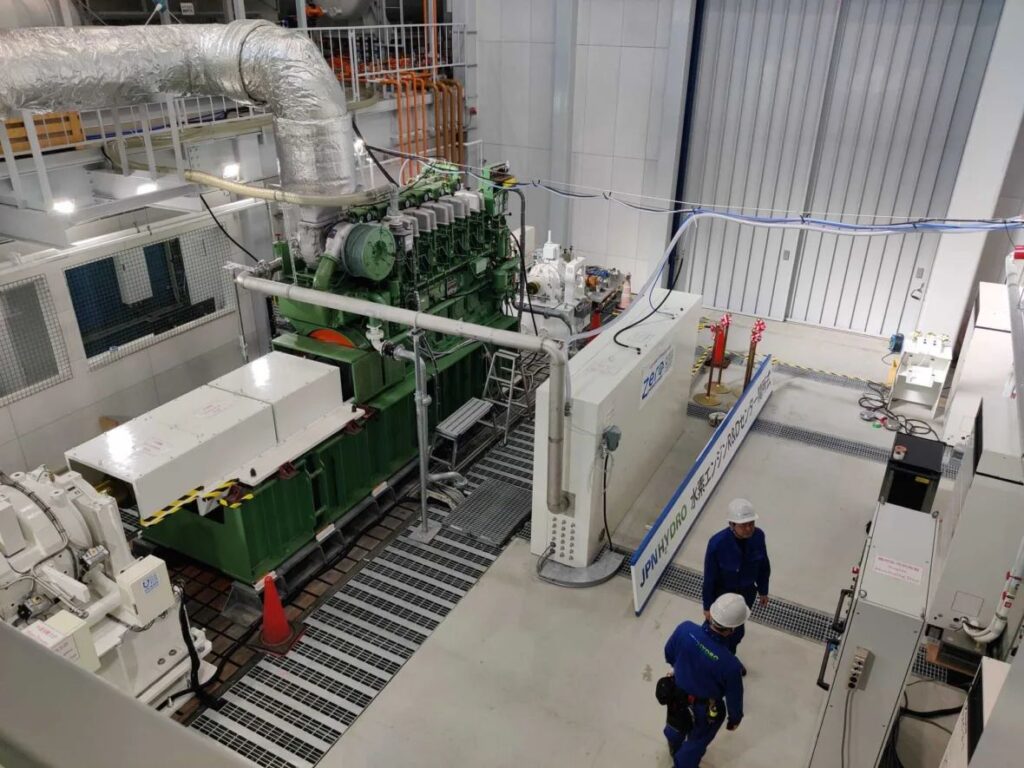 The site is equipped with an engine test bench featuring precise measurement tools and a hydrogen station capable of supplying hydrogen to ships.