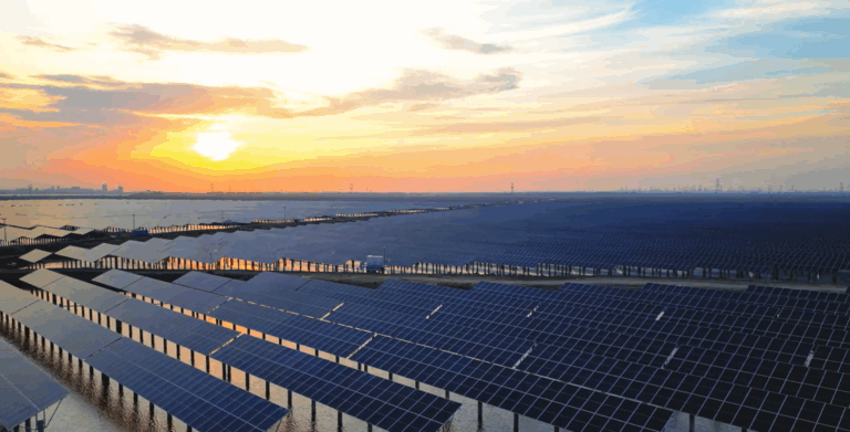 The project, which is now fully connected to the grid, employs a dual-use model of “power generation above, aquaculture below,” spanning approximately 353 hectares of fish ponds and featuring 370,000 bifacial solar panels.