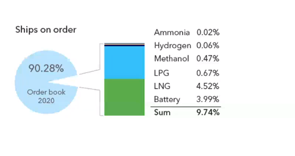 Looking at the current fleet and known orderbook less than 1% of the existing global fleet is running on alternative fuels, while 10% of the current newbuilds are ordered with alternative fuel systems.