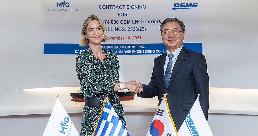 South Korean shipbuilding company Daewoo Shipbuilding and Marine Engineering has received an order for two liquefied natural gas (LNG) carriers from Maran Gas Maritime, a subsidiary of the Angelicoussis Group, the largest shipping company in Greece.