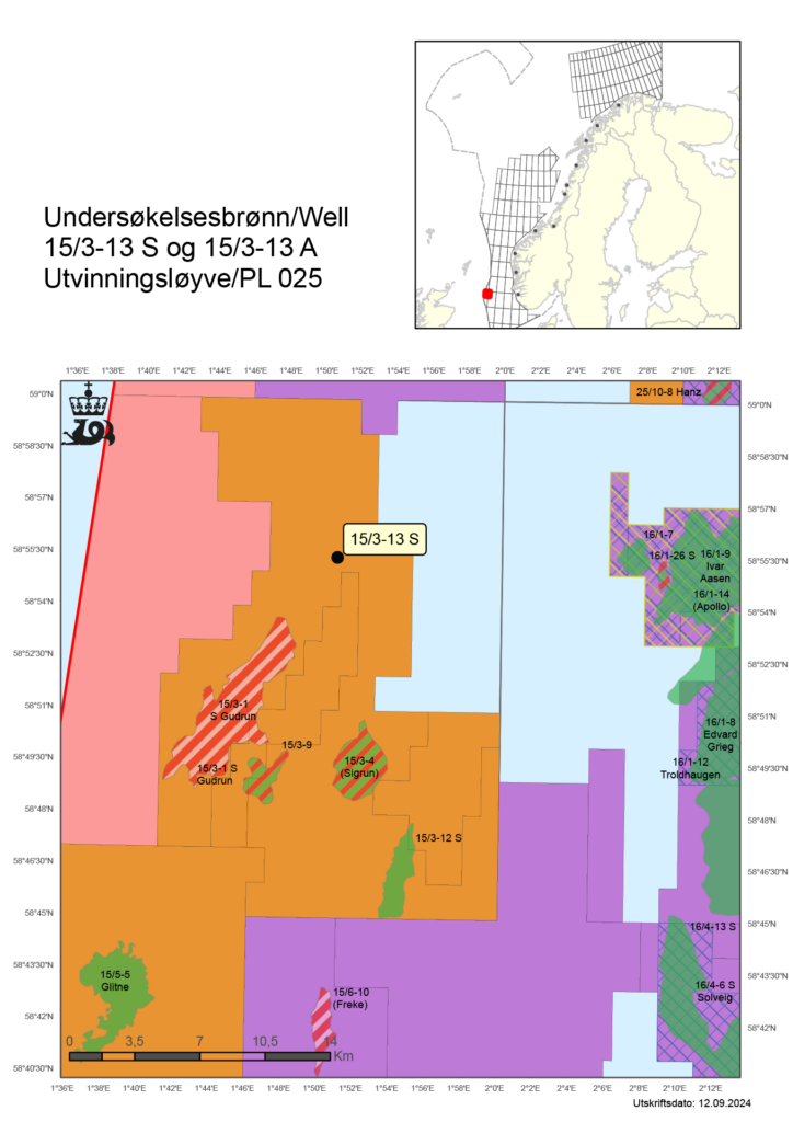 The discovery was made in wildcat wells 15/3-13 S and 15/3-13 A on the Gudrun field in the North Sea, located 50 kilometers north of the Sleipner Øst field in production license 025 and in a water depth of 110 meters, with the wells permanently plugged and abandoned.