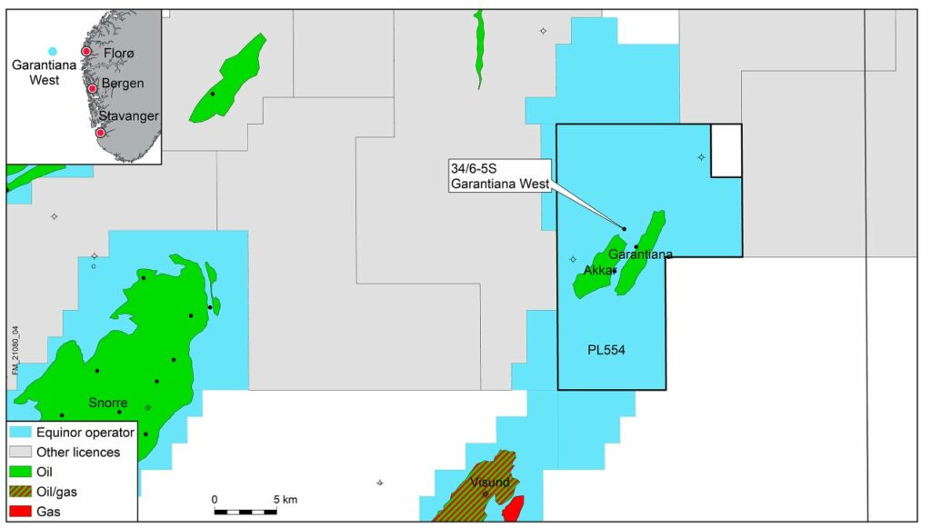 The well 34/6-5 S on the Garantiana West prospect encountered an 86-metre oil column in the Cook Formation, of which about 60 metres are sandstones with moderate to good reservoir quality.
