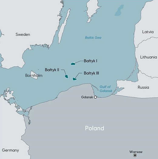 With Bałtyk II and Bałtyk III each having a 720 MW capacity, the three offshore wind farms will have a total installed capacity of 3 GW.