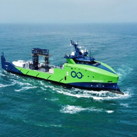 Following the initial 78-meter Armada class vessels which have already been delivered to Ocean Infinity, the newbuilds are also designed to be operated from shore and eventually utilize green ammonia as fuel.