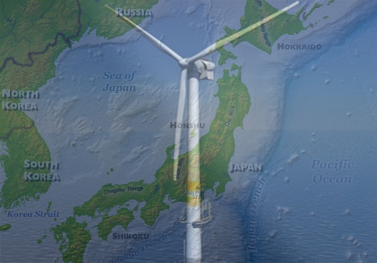 The first offshore wind farm is located off the coast of Choshi, east of Tokyo.