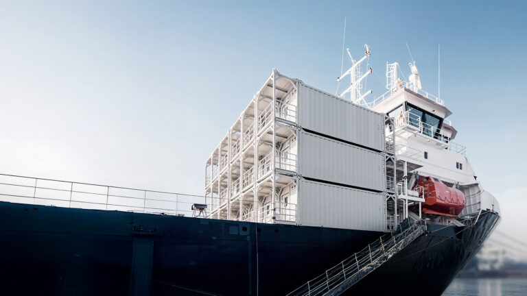 The modules can be combined like a modular system and installed on board converter platforms, jack-up barges, supply vessels, or port facilities. Thanks to standardized interfaces, entire container facilities for residential accommodation, recreation rooms, offices, and other premises can be set up and put into operation within a few hours.