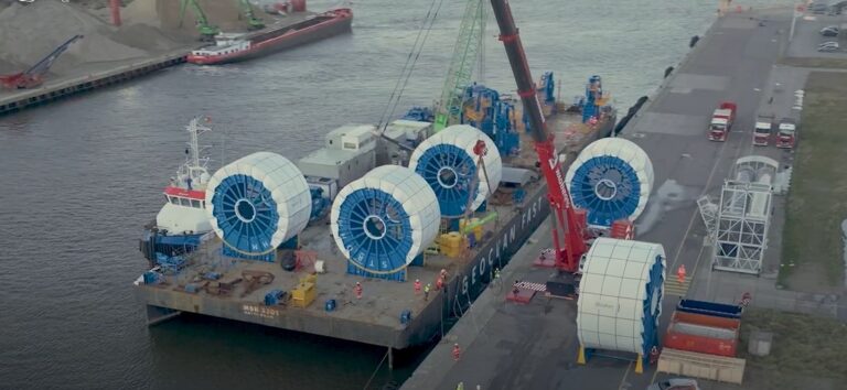 On September 13, the French company announced that Fast-Flex had loaded six TCP reels at Strohm’s manufacturing facilities in Ijmuiden, Netherlands, three seafastened on deck and three inside RDS systems, that will be used to connect the FSRU Excelerate Excelsior to the onshore site. Pre-trenching operations are next on schedule.