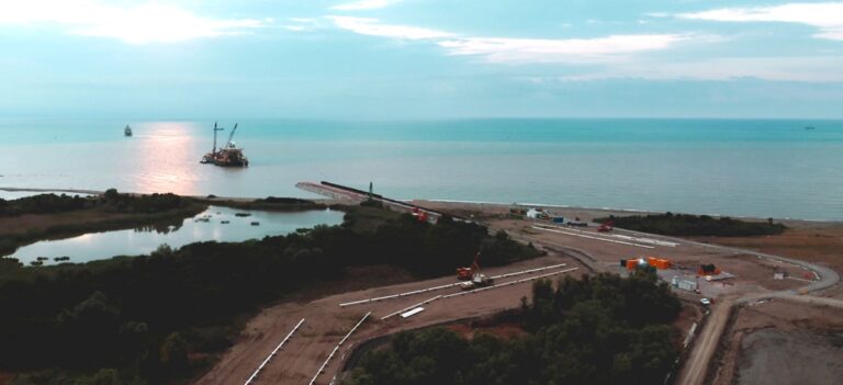 When completed, the shallow sea section – which is the beginning of the line that will descend to the seabed and reach a depth of 2,200 meters – will reach a depth of 50 meters in the first five kilometres from the land arrival point. Among others, Saipem’s Castoro 10 vessel is working on this part of the operation.