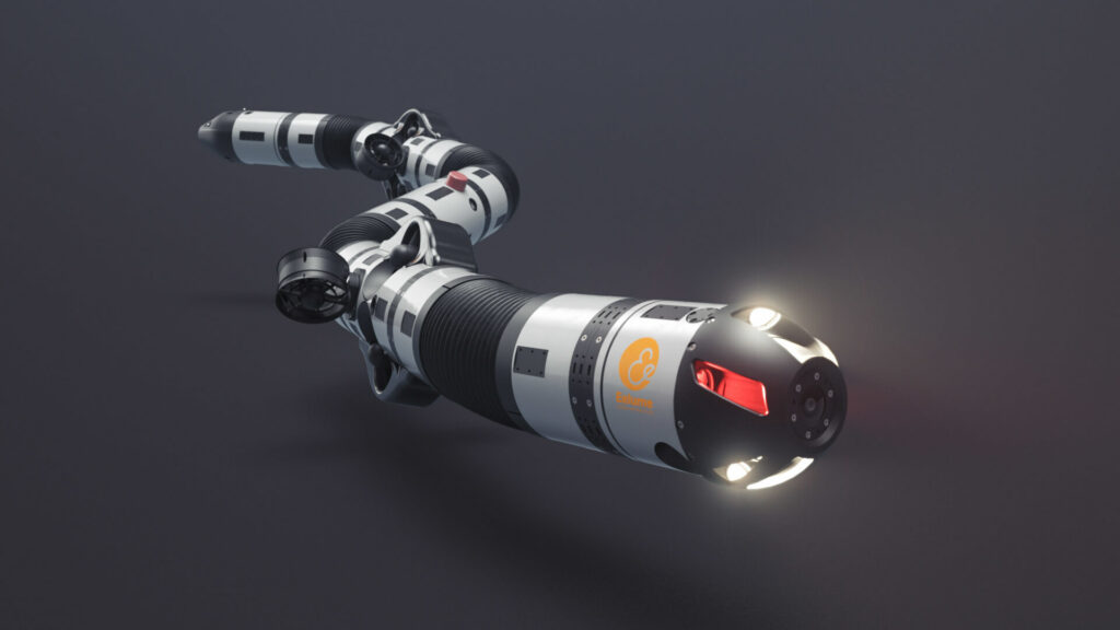 An autonomous subsea resident robot like Eelume’s is the industry’s first. Having typically 8 thrusters and 1 or 2 joints, the Eely500 has unique manoeuvring and access capabilities. In addition, this gives the drone redundancy which allows it to operate even if faults occur on one or two thrusters.