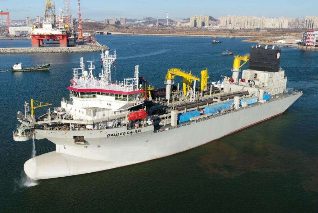 Another interesting addition to the fleet was trailing suction hopper dredger Galileo Galilei, built by the COSCO Dalian shipyard in China. This dredger has a hopper capacity of 18,000m³ and joins JDN’s medium-sized hopper dredgers. A special feature of this vessel and unique for the company’s hopper fleet is that it has two separate hoppers on board. This allows dredged material to be spread evenly over both hoppers, thus optimally controlling the load and the draught.
