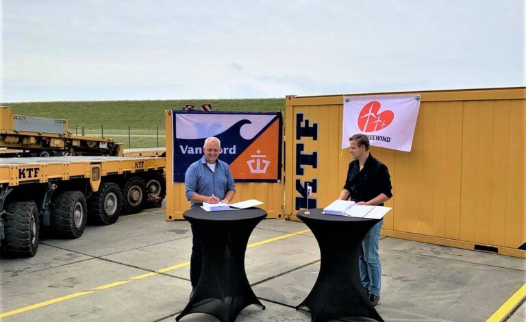 Zuiderzeewind and Kraanverhuur Transport Friesland officials signing a contract