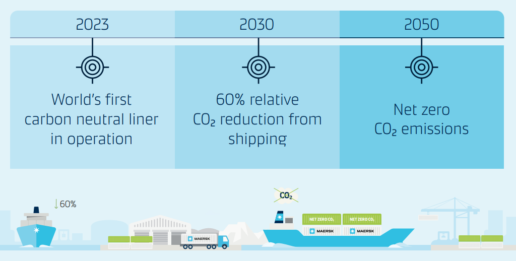 Container shipping heavyweight Maersk plans to launch the world’s first carbon-neutral liner vessel in 2023, seven years ahead of the initial 2030-ambition, Maersk said.