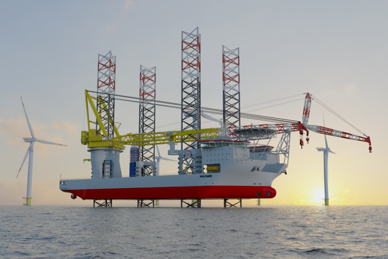 Currently under construction, the Voltaire will enter service in 2022. It will have a lifting capacity of over 3,000 tonnes. When the vessel has its legs fully extended and the crane at full height, it will measure 325 metres tall – taller than the Eiffel Tower.