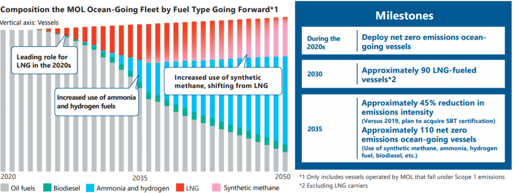 In the meantime, MOL will make sure to achieve our target adopting immediately available fuels such as LNG and biodiesel without waiting for next-generation candidate fuels like ammonia to become available.”