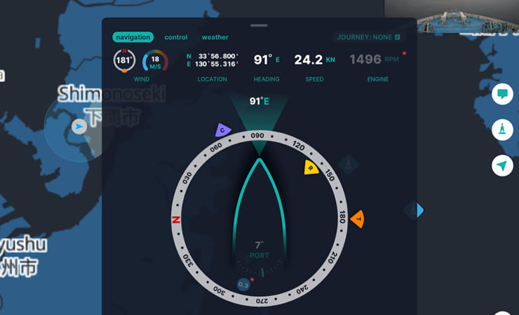 Additionally, information on currently available nautical instruments and AIS and electronic charts, which are indispensable during a voyage, are integrated into a portable tablet device to ensure intuitive operation.