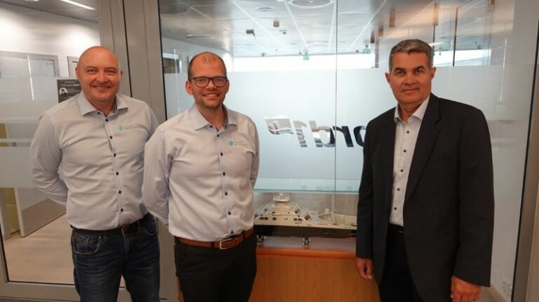 From left: SVP Sales at NES Stein Ruben Larsen, Sales manager at NES Martin Aasheim and Project and Technology Manager at Fjord1 ASA, Nils Kristian Berge. Photo: Norwegian Electric Systems