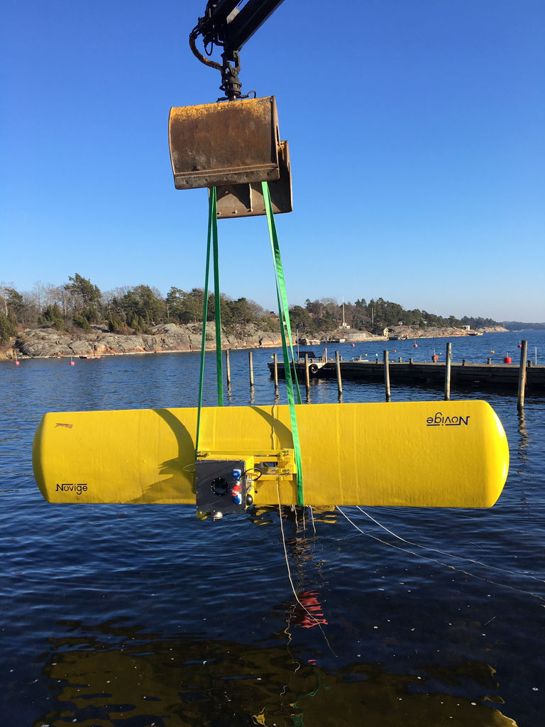The 1:5 scale NoviOcean device has been deployed in the Stockholm archipelago earlier in March, where it will remain for 10 weeks and be put to various try-outs.
