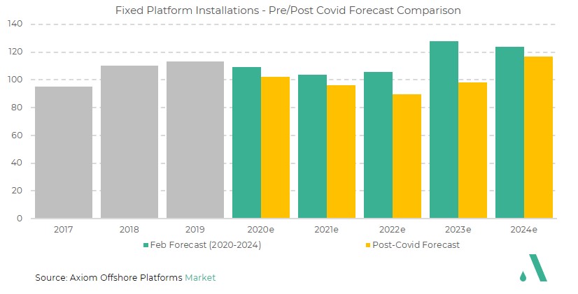 Recent market conditions have pushed operators to delay, defer or cancel about 240 platform installations over the 2020-2024 forecast.