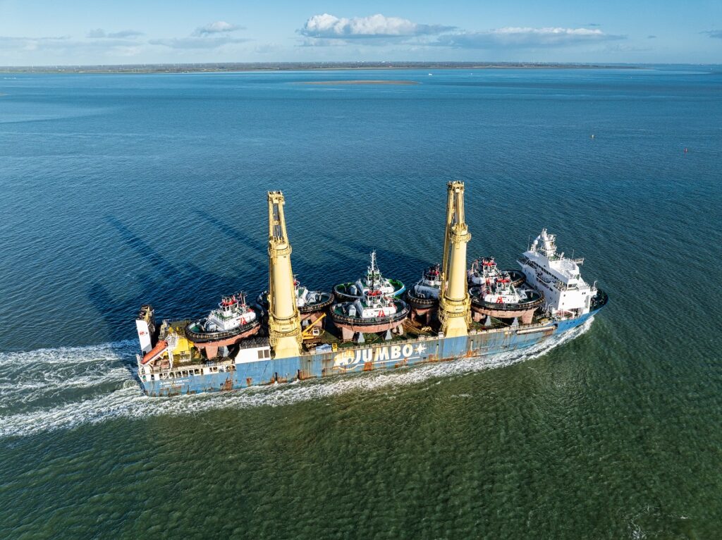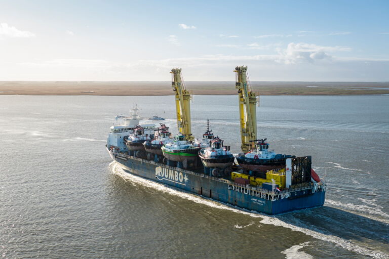 Built at the Damen Song Cam Shipyard in Vietnam, the tugboats underwent extensive commissioning, port tests, and sea trials after their launch between April and August this year. In October, the vessels were loaded onto the heavy-lift ship Jumbo Kinetic.