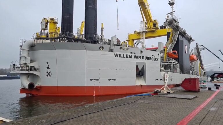 The brand new dredger Willem van Rubroeck of Jan De Nul Group is being prepared for its first job.