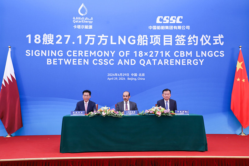 The multibillion-dollar deal for these ships was signed in Beijing by Saad Sherida Al-Kaabi, Qatar’s Minister of State for Energy Affairs, President and CEO of QatarEnergy; Chen Jianliang, Chairman of Hudong‐Zhonghua Shipbuilding; and Li Hongtao, Chairman of China Shipbuilding Trading, during a ceremony attended by senior executives from QatarEnergy, QatarEnergy LNG, and China State Shipbuilding Corporation.