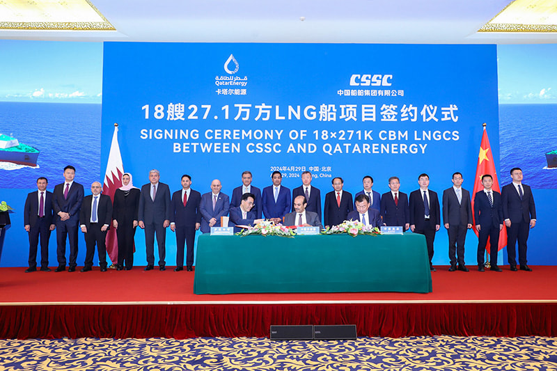 ​The Qatari heavyweight’s agreement with China State Shipbuilding Corporation (CSSC) will enable the construction of 18 QC-Max size LNG vessels, with a capacity of 271,000 cubic meters each, which will be built at China’s Hudong-Zhonghua Shipyard, a CSSC wholly-owned subsidiary. With a total length of 344 meters, a beam of 53.6 meters, a depth of 27.2 meters, and a designed draft of 12 meters, these vessels will adopt a dual-fuel low-speed engine propulsion system and the NO96 Super+ containment system.