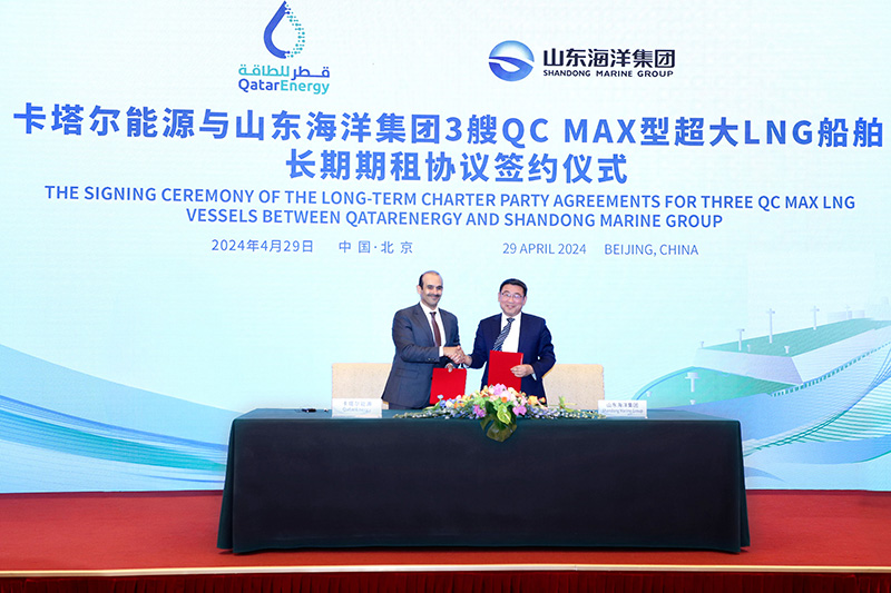 QatarEnergy’s CEO penned these three separate sets of agreements in Beijing with Wang Yongxin, President of CMES, for the operation of four vessels; Li Maozhong, Chairman of Shandong Marine Energy, for the operation of three ships; and Cong Jian, General Manager of CLNG, for the operation of two vessels.