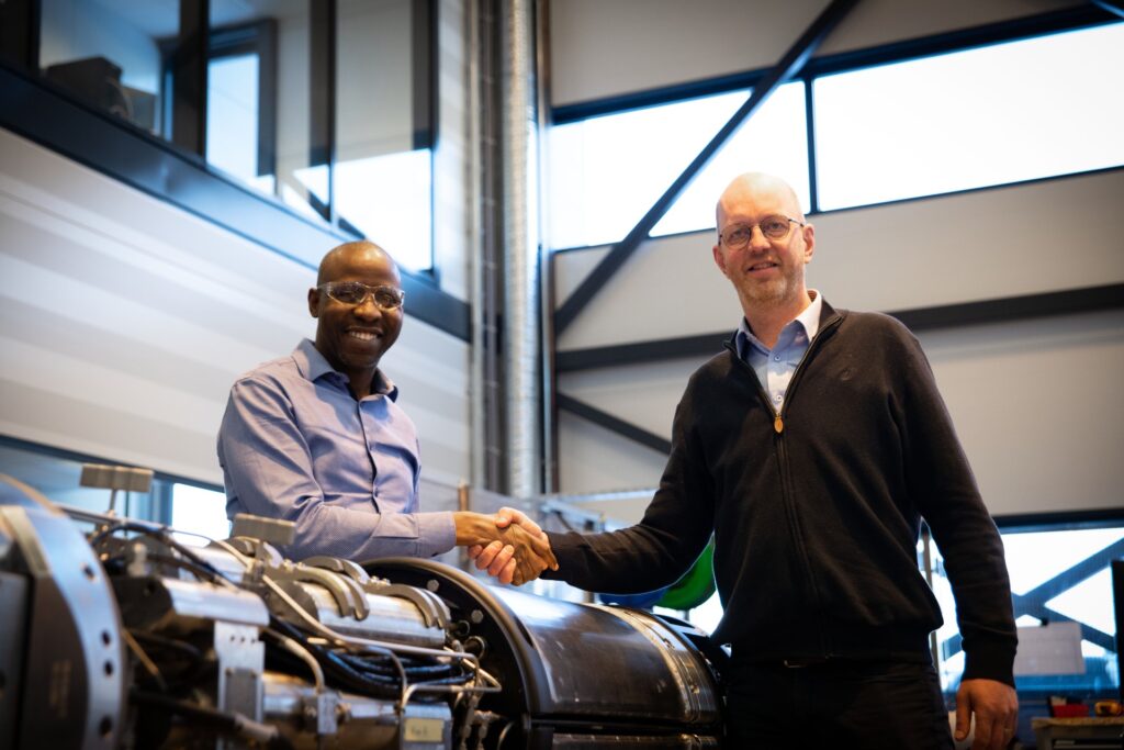 Photo of Justus Ngerebara, Lead Well Engineer at SNEPCo (left) and Trond Løkka, chief innovation officer at Optime Subsea (right). Source: Optime Subsea