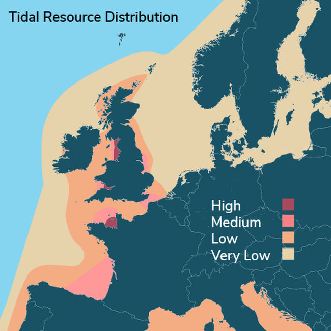 Illustration/Tidal resource distribution in Wales and Ireland (Courtesy of SELKIE Project)