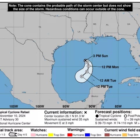 The National Hurricane Center also confirmed in its forecast for the Gulf of Mexico waters that things were in the process of settling down and outlined: “A weak low and trough, remnants of Rafael will meander over the central Gulf through Tue evening before moving to the NW basin and dissipating Wed.