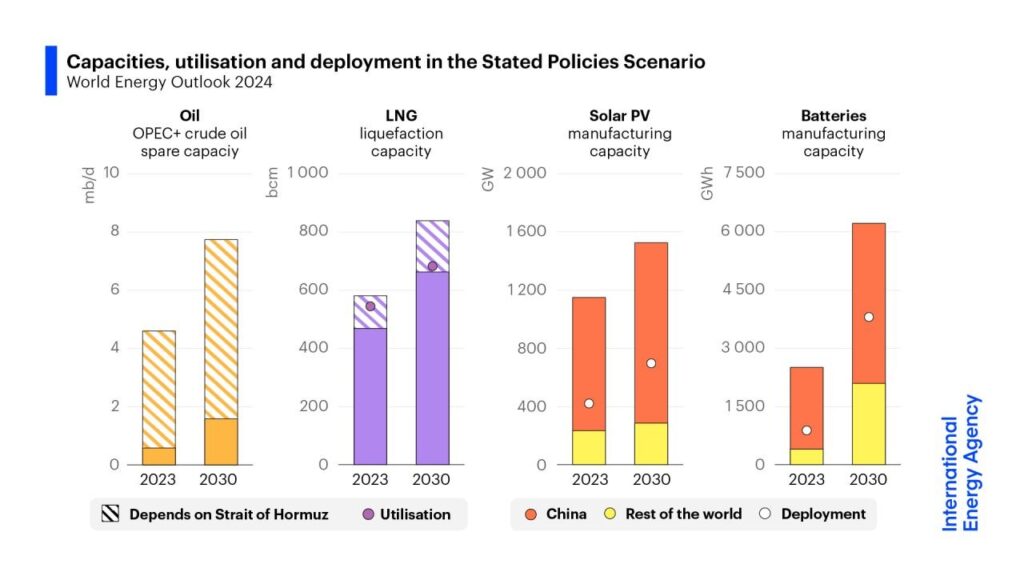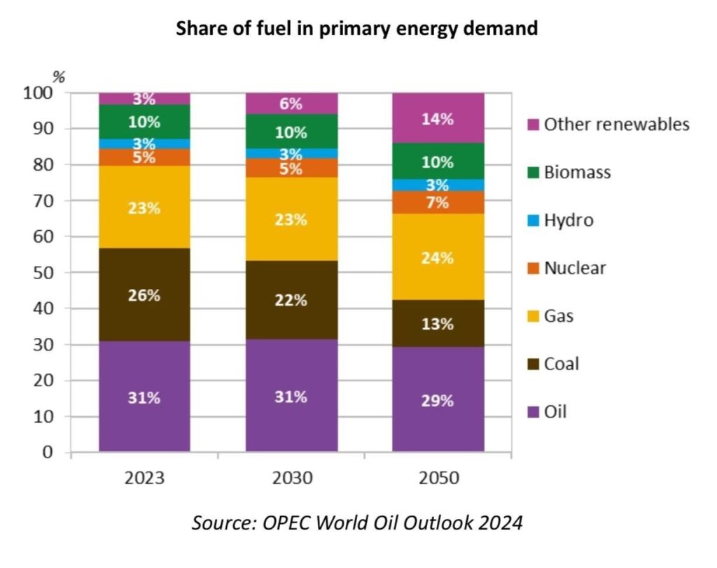 On the other hand, OPEC’s ‘World Oil Outlook (WOO)’ from September 2024 underscored the domination of fossil fuels in the global sphere of energy supply up to 2030, when they are expected to represent 77% of the energy mix. The cartel claims that the IEA’s ‘World Energy Outlook (WEO),’ which projects a 75% share for fossil fuels in 2030, a spike from the 73% share previously reported in the WEO 2023, confirms its projections of higher fossil fuels use.
