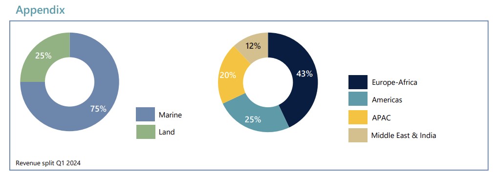 Revenue in the first quarter was €503.2 million, a 9% increase compared to €465.8 million in Q1 2023. In the Marine segment, revenue grew by 13.8%, from €335.1 million in Q1 2023 to €378.2 million in Q1 2024, enabled by the expansion of the geotechnical fleet.
