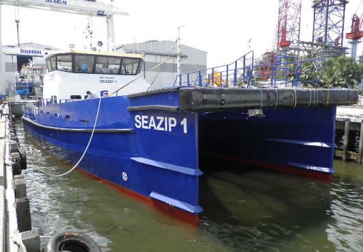 Last week, two twin axe catamarans of the successful Damen FCS 2610 type have been launched at Damen’s newbuilding yard in Singapore. Both vessels will be completed in the coming weeks after which they will be transported to the Damen yard in Gorinchem, The Netherlands where they will be delivered to SeaZip Offshore Service in September.