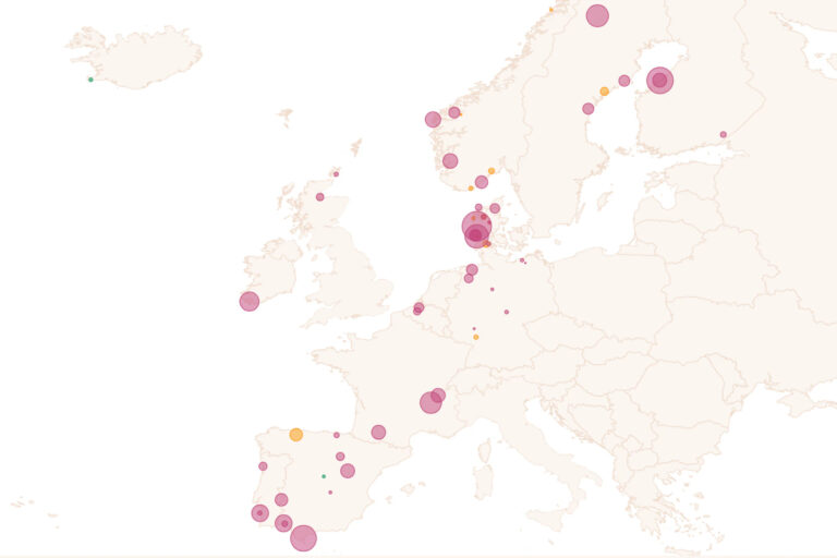 Denmark alone accounts for more than half of all the planned hydrogen volumes across the 61 projects mapped by T&E. But in terms of fuels earmarked for shipping, Spain leads the way and is home to a third of the potential fuel supplies. The UK has very few projects while T&E found none in Italy and Greece.
