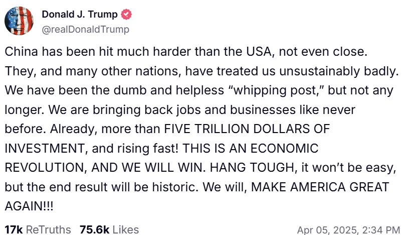 Trump’s Truth Social post