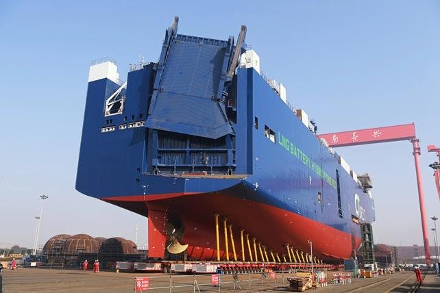 The third and final dual-fuel LNG battery hybrid pure car and truck carrier (PCTC) has been launched in China for United European Car Carriers (UECC), a Norway-based provider of shortsea RoRo transportation.