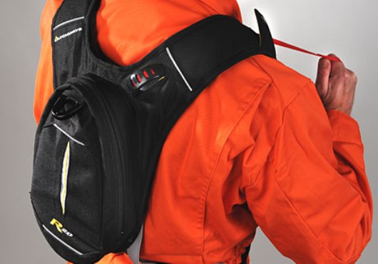 In the event of a fall from height, the Personal Rescue Device—integrated into a full body harness – will not only arrest the fall, but lower the user safely to the ground in matter of seconds by the activation of a parachute-style rip cord.
