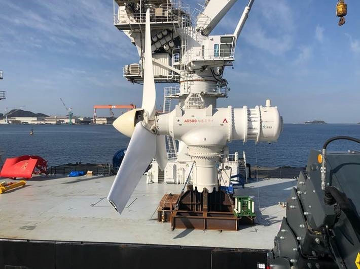 This is the first full-scale trial project of AR500 tidal turbine. The turbine has been temporarily installed subsea and run at 500kW output power while its performance is being monitored.