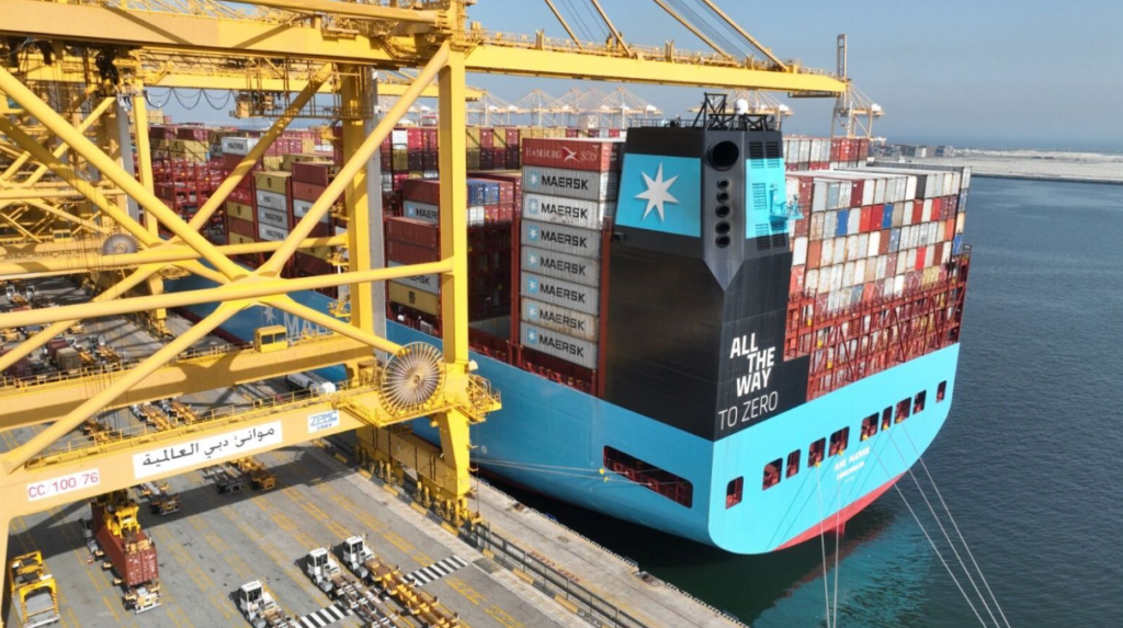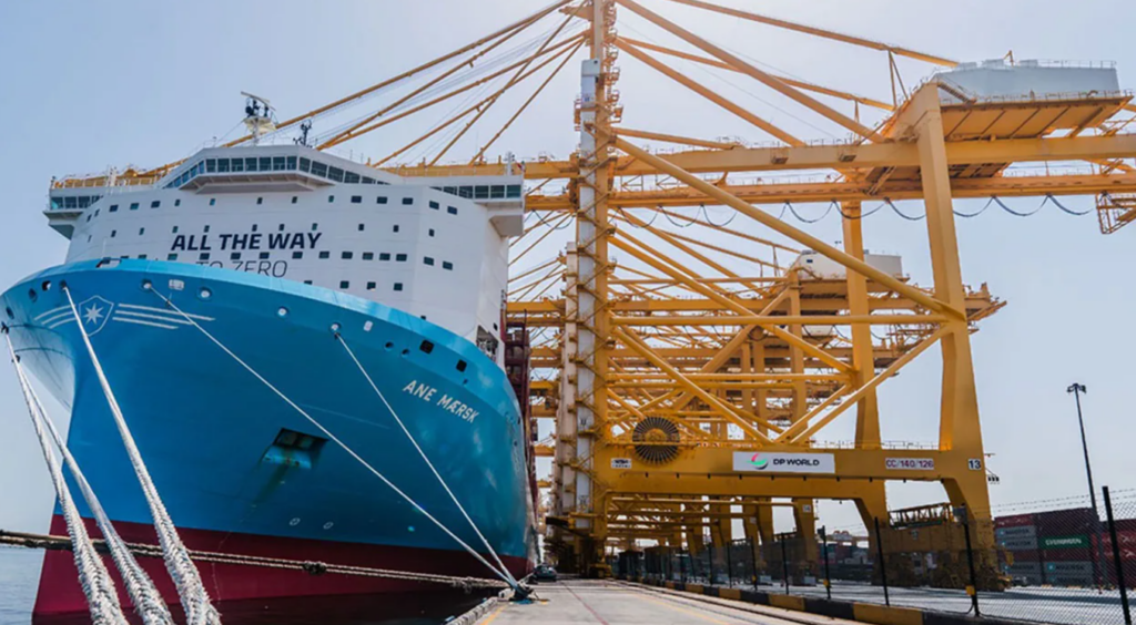A.P. Moller – Maersk’s first large vessel that can run on green methanol has arrived in Dubai, UAE, for the first time and was welcomed by DP World at Jebel Ali.