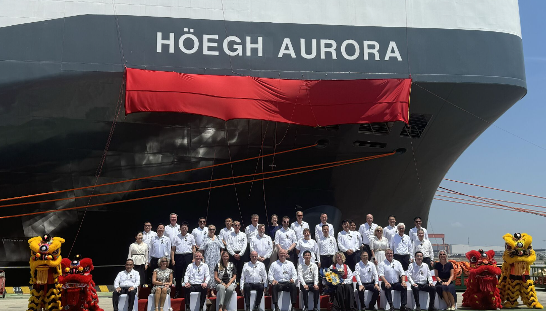 The first of twelve multi-fuel Aurora-class vessels ordered by Norway-based shipping company Höegh Autoliners, Höegh Aurora, was named and delivered at China Merchants Heavy Industry’s yard in Jiangsu, China.