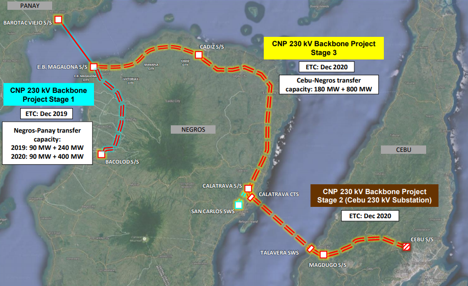 Stages two and three of the Cebu-Negros-Panay interconnection project is to establish a 230kV backbone to accommodate the transmission of excess power from Panay and Negros towards the rest of Visayas.